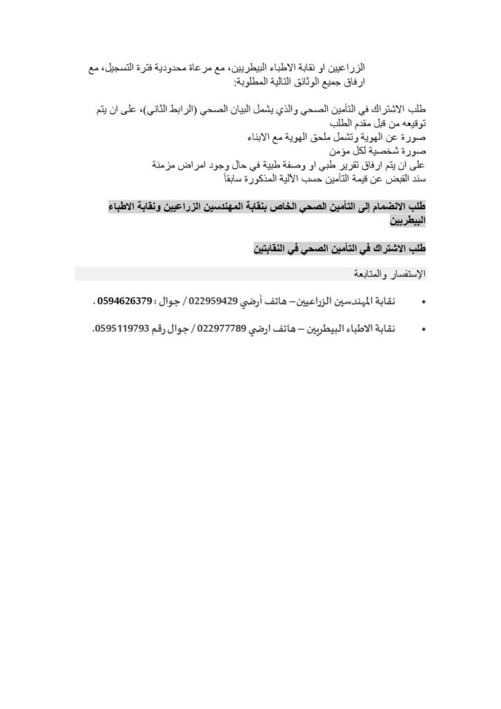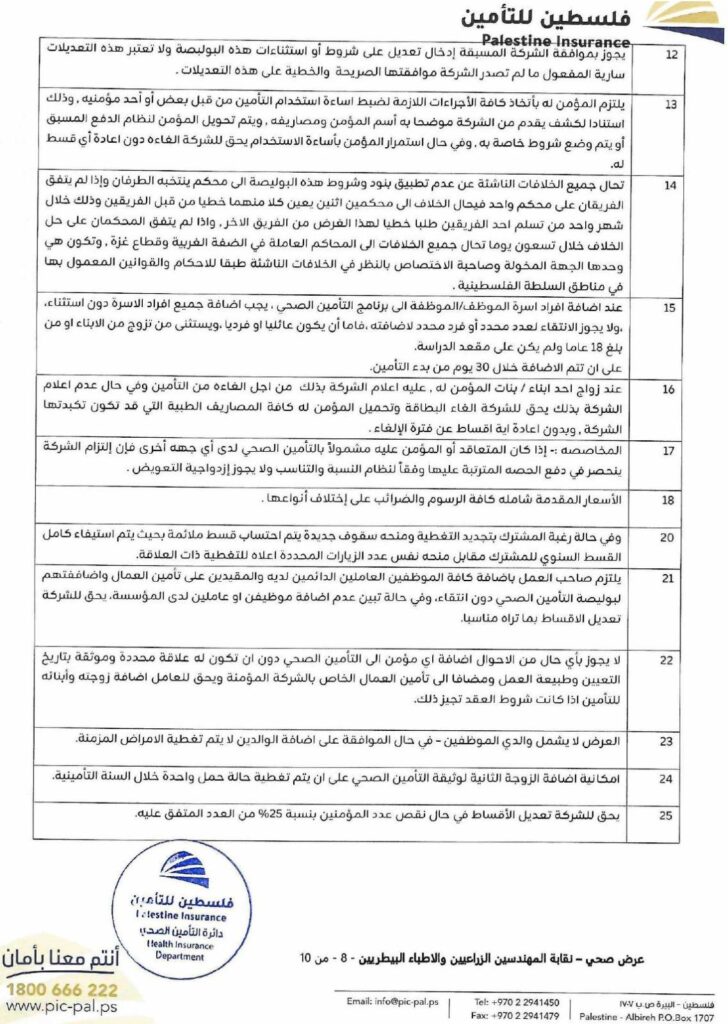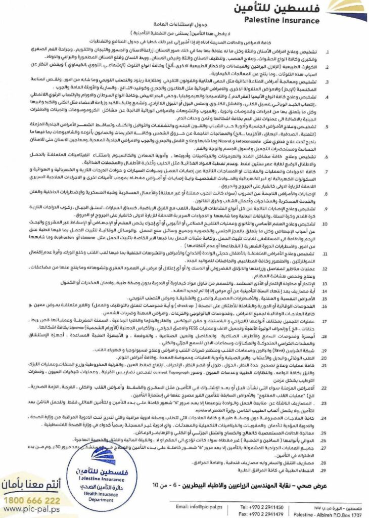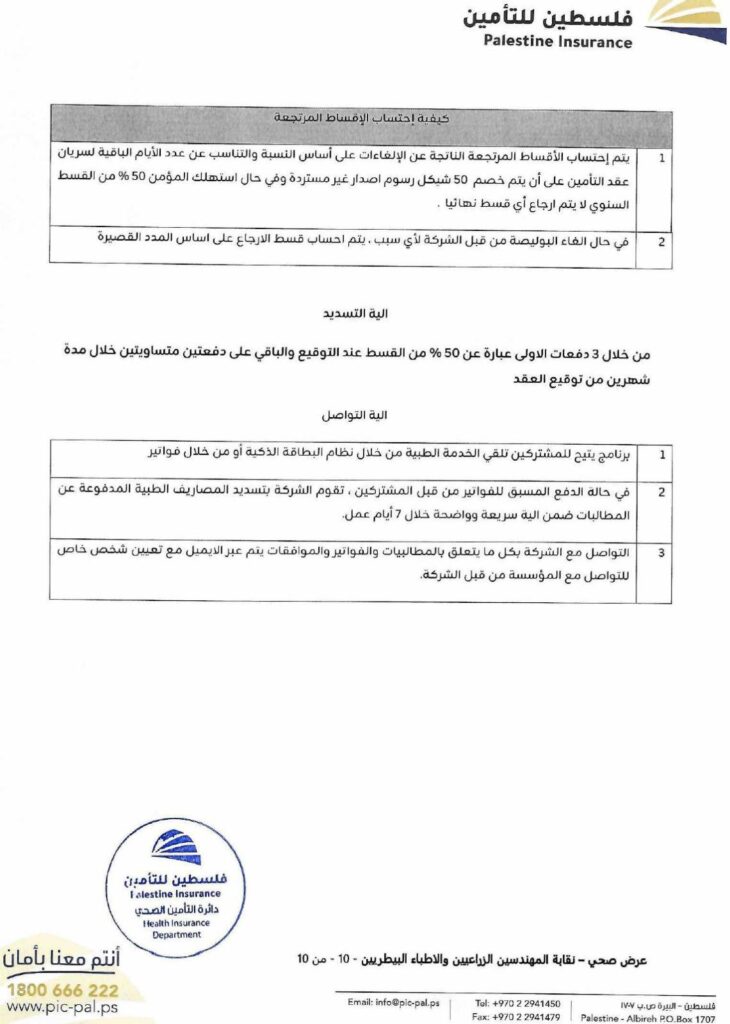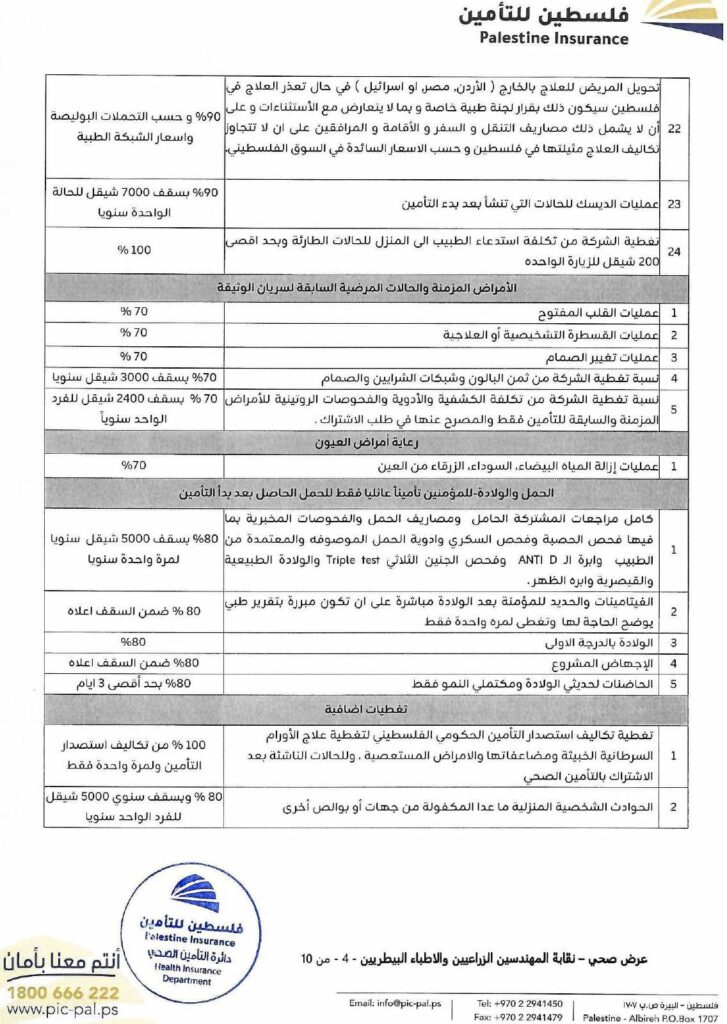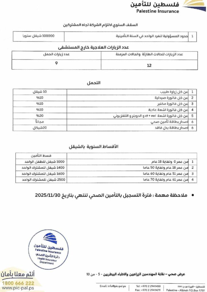 تضع نقابة الأطباء البيطريين / مركز القدس بين أيديكم الوثيقة الرسمية لاتفاقية التأمين الصحي الشامل، والموقّعة مع شركة فلسطين للتأمين.